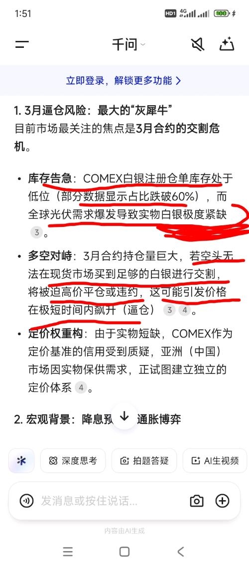 关键的内容,它不让展示,只有我看到。大意是说,没有那么多现货来交割,将会被迫高价买、或者违约。当然,它还可能故技重施,再打压期银,以造成恐慌抛售现货。但,这改变不了现货紧缺的局面!因此,期银,中期,注定往上走!