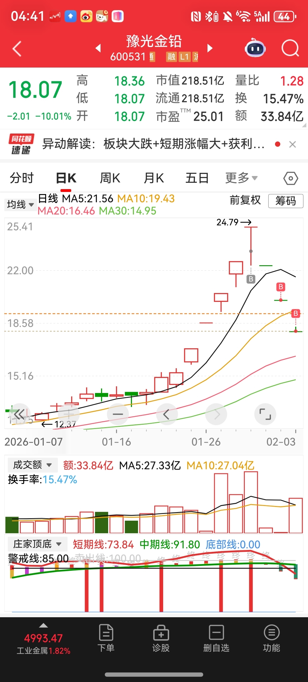 $豫光金铅(SH600531)$ 我承认我第一天就低吸当天涨停板第二天想套利结果套了,当天仓位小就买了20万,第二个跌停板我只买了100股,第三个跌停板板我买了60万目前浮亏5%,今天我再买五十万,假如今天涨5%我就T 算解套,但是我可以明确的说,这股值18元,主要是涨的太急,扯着蛋了而已,没必要一样割那才是大萨比,不需要几天就回来了