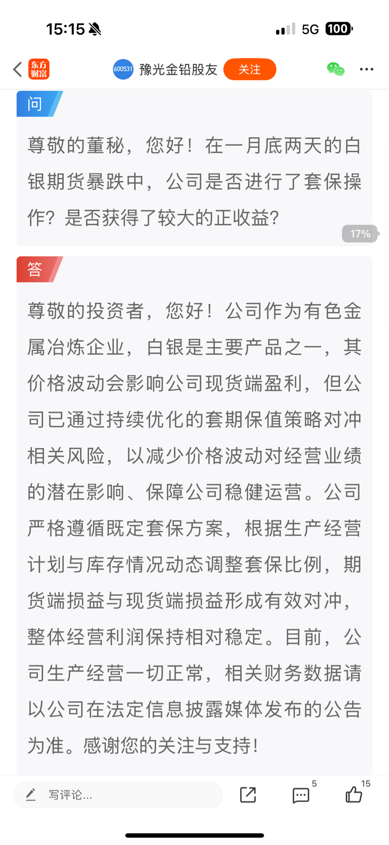 $豫光金铅(SH600531)$ 实在看不懂这么跟跌,按道理公司只用看利润,看市场份额是否变大,公司也不是炒期货的,做了套保稳住利润不亏损就行。看不懂