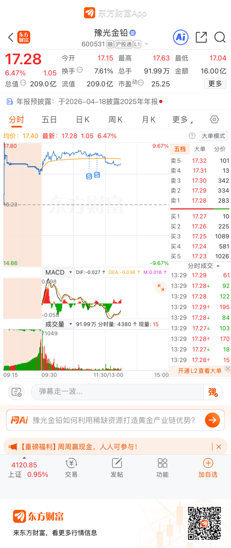 $豫光金铅(SH600531)$ 拜拜嘞,感谢主力红包!