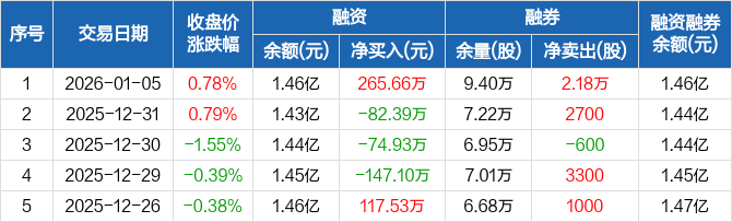 栖霞建设:融资净买入265.66万元,融资余额1.46亿元(01-05)