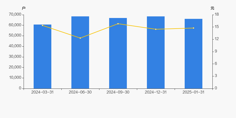 截至2025年1月31日,公司最新总股本为14.94亿股,且均为流通股。户均持有流通股数量由上期的2.18万股上升至2.26万股,户均流通市值33.36万元。