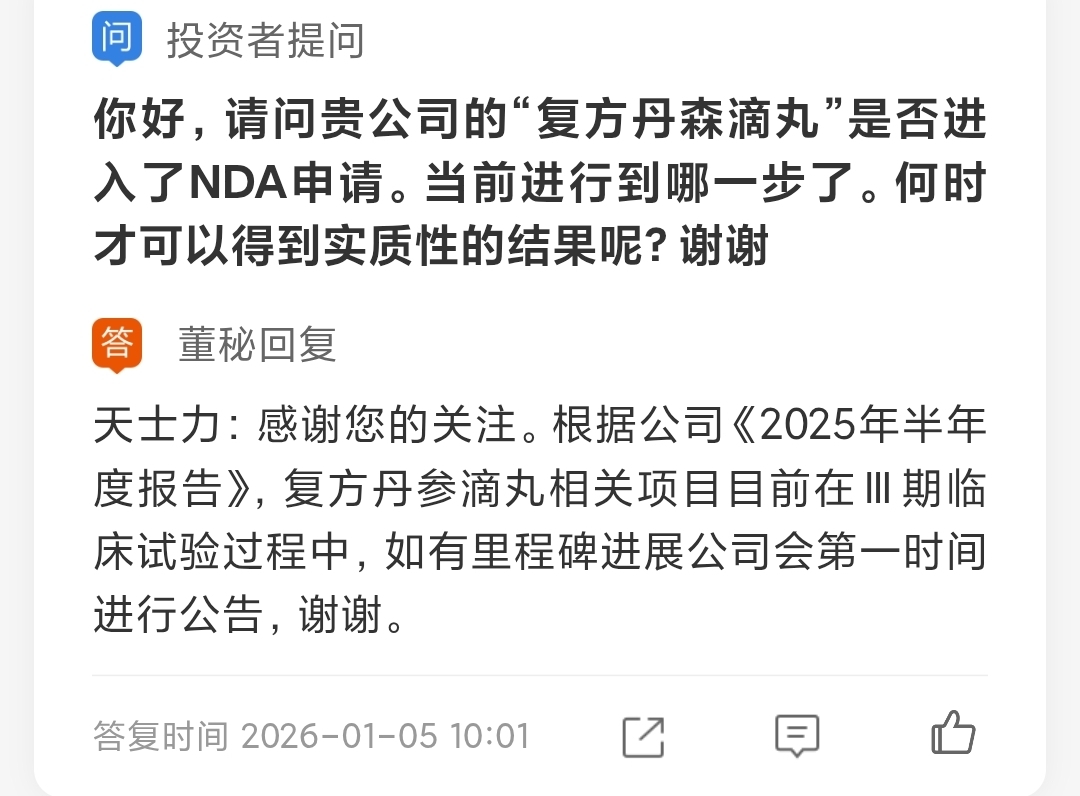 $天士力(SH600535)$ FDA最后一环,通过的话天士力算是为中药正名且划时代了,到时其他中药股有一个算一个都是渣渣都得让路。期待!