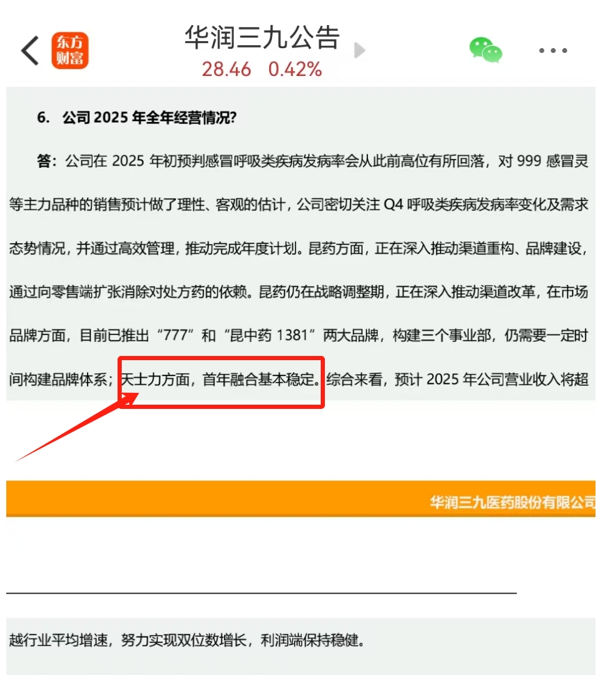 “天士力方面,首年融合基本稳定。”这句话应该怎么理解?1.基本稳定,就是还有不稳