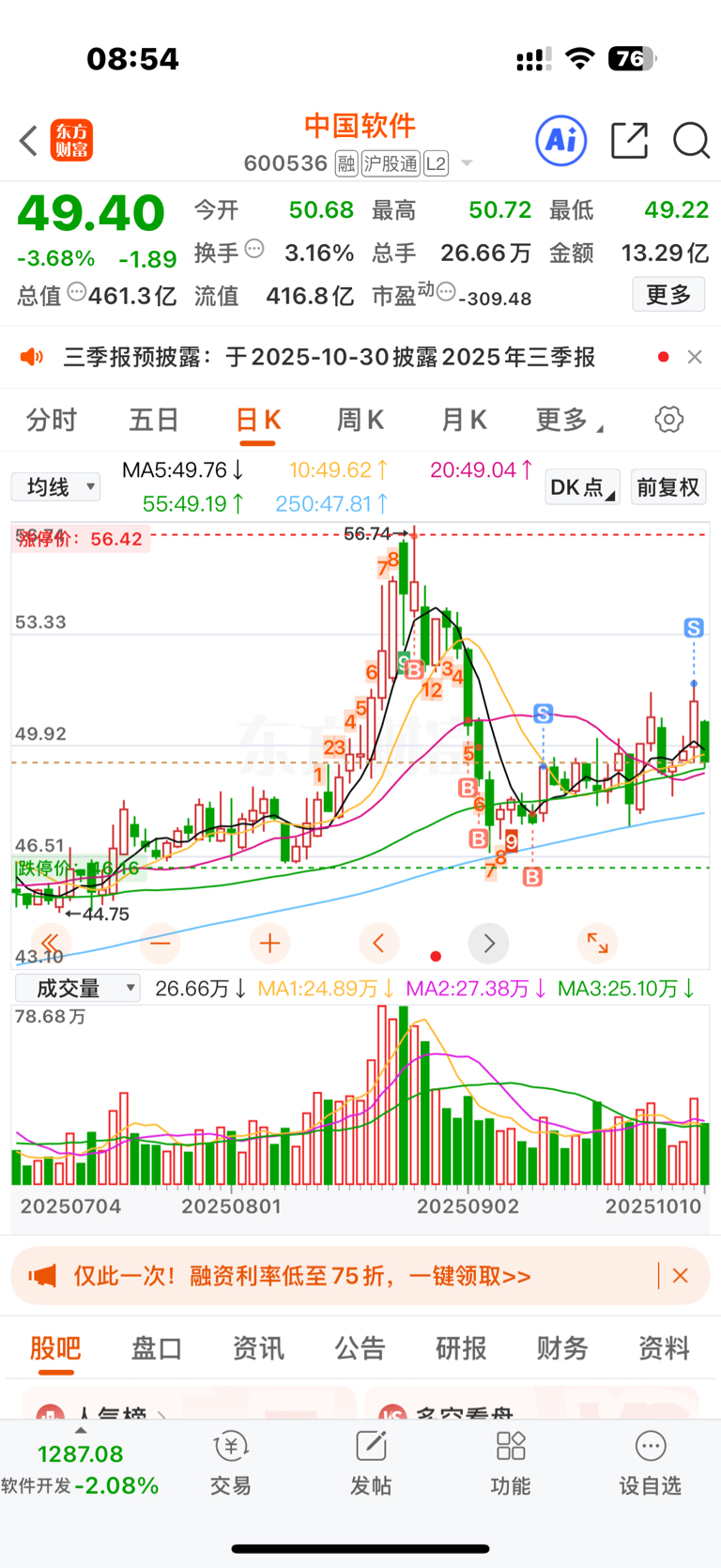 前天刚减仓,昨天还以为减对了,今天就出软件利好,股市魅力和难度就在于难以预测。