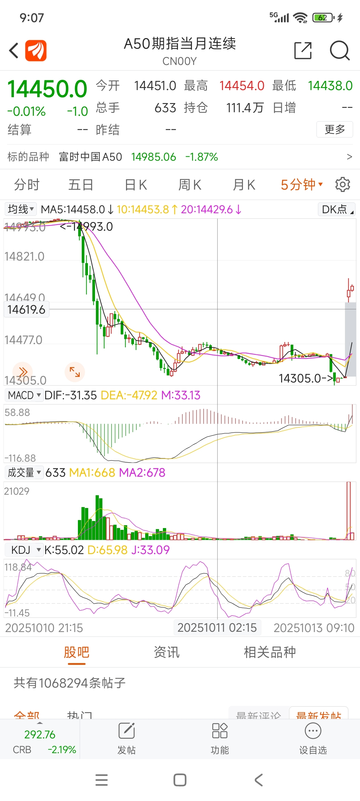 A50只要不跌破14620今天就是反转!!!!大A今天就是V反转!!!!!!