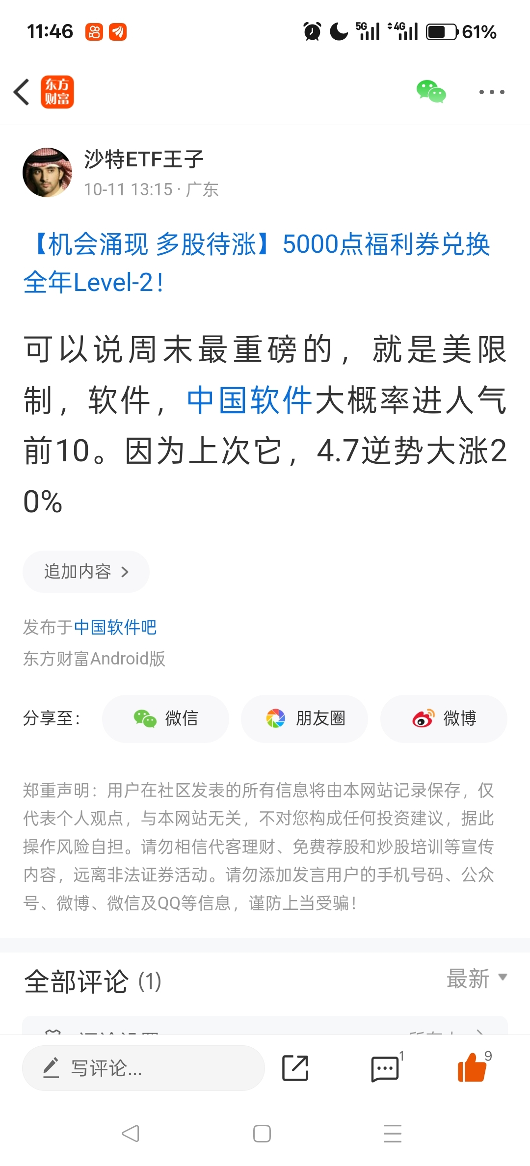 温馨提示: 1.根据《证券法》规定,禁止编造、传播虚假信息或者误导性信息,扰乱证券市场;2.用户在本社区发表的所有资料、言论等仅代表个人观点,与本网站立场无关,不对您构成任何投资建议。用户应基于自己的独立判断,自行决定证券投资并承担相应风险。《东方财富社区管理规定》