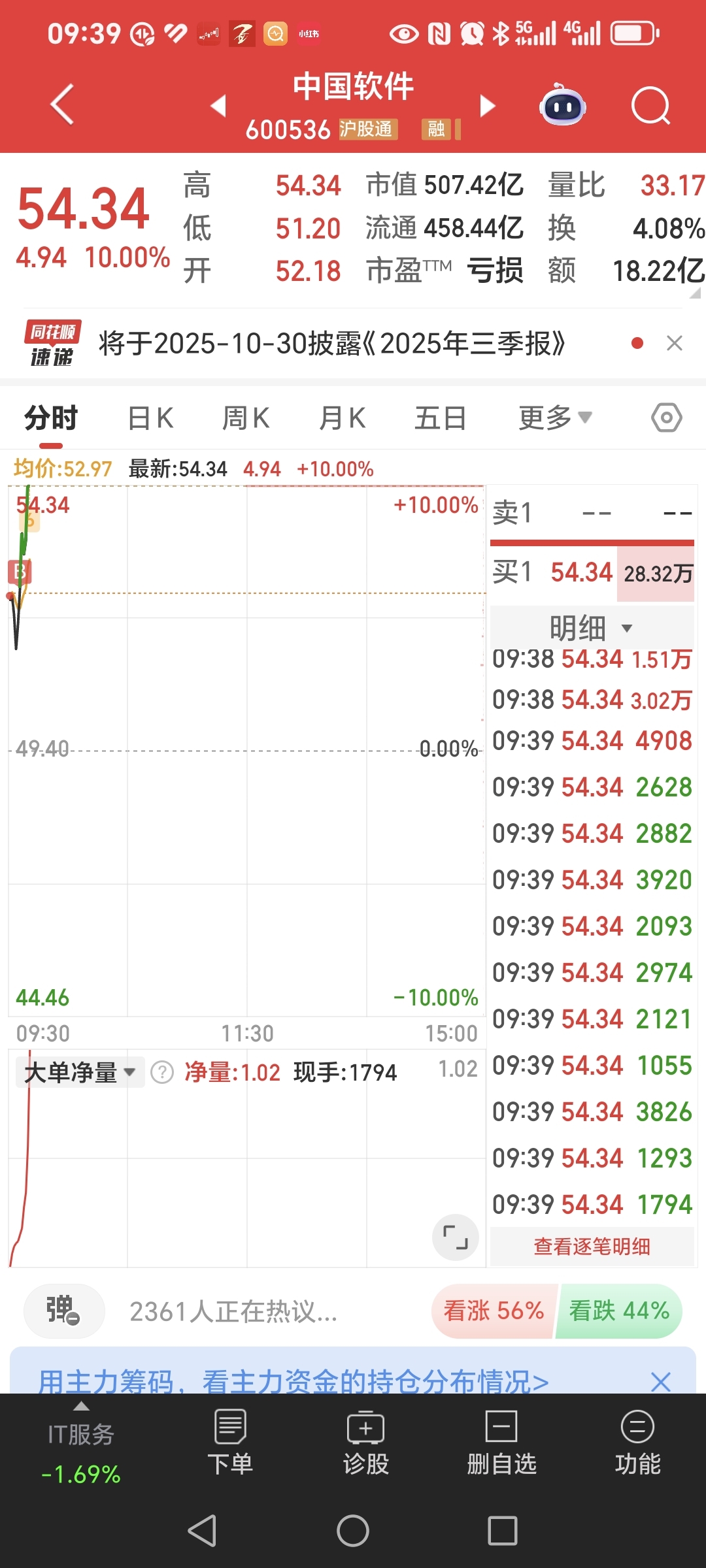 $中国软件(SH600536)$ 盘前提示,不服就干!那就干到它服早上开盘前提示不服就干!现在不服来辩