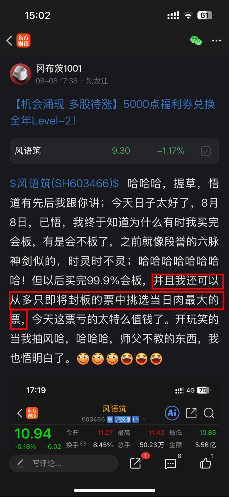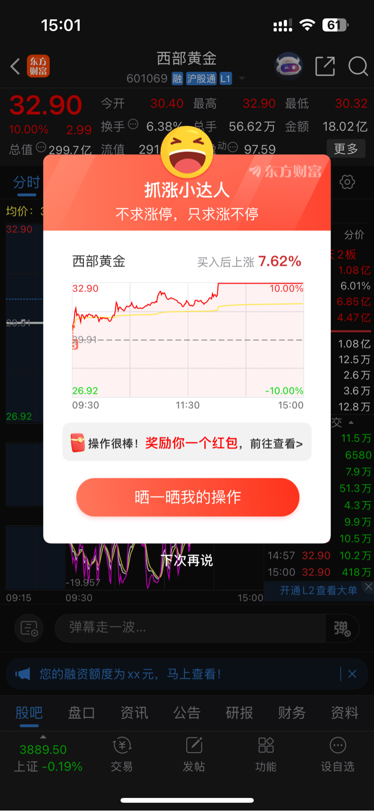 早盘本想买中国软件来着,但高开太大了,所以买了黄金。这就是我当时说“并且我还可以