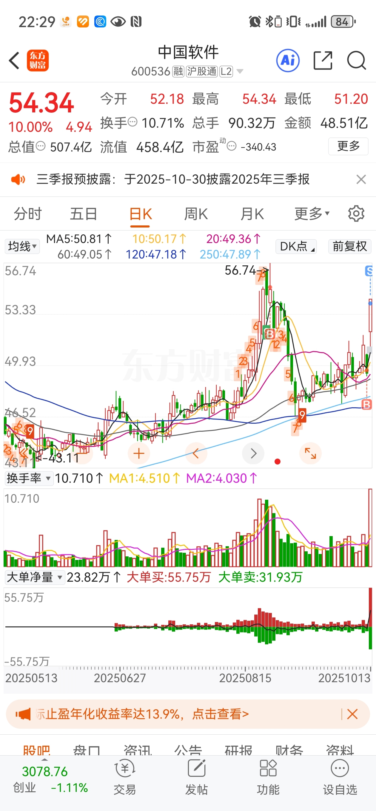 $中国软件(SH600536)$ 套了48天,先出来压压惊,留下的兄弟们发财