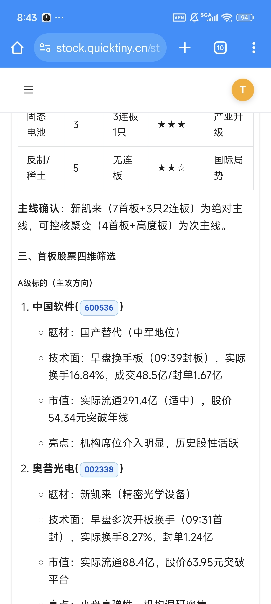 $中国软件(SH600536)$$奥普光电(SZ002338)$$多氟多(SZ0
