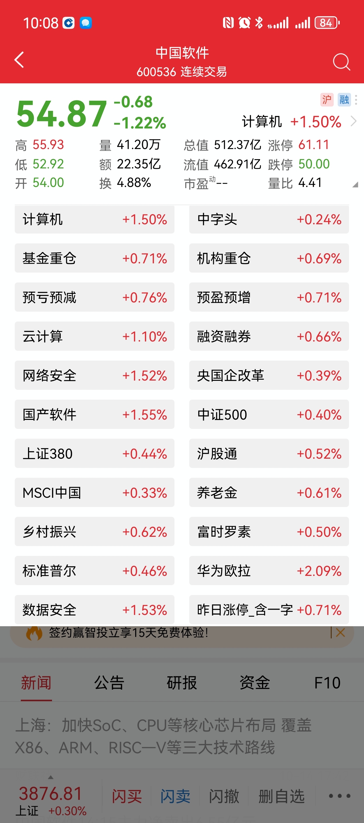 $中国软件(SH600536)$