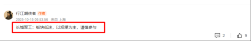 $长城军工(SH601606)$:军民融合+新能源车+QFII等概念,两连板之后昨天冲击涨停没能成功封板,今天早盘板块整体又是弱势震荡,短期由强转弱,盘中提示观望,谨慎操作为上。随后股价一路向下,好消息是成交是缩量的,说明主力和机构都还在,后面还是可以继续关注,多家机构重仓,中线还是看涨的。