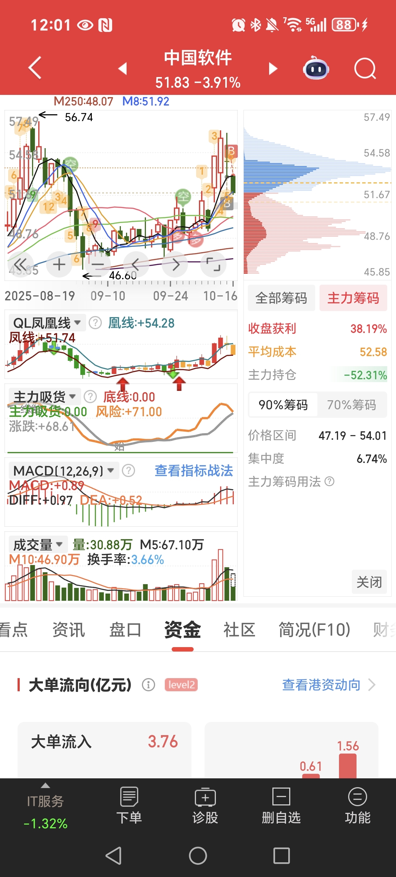 今天开盘砸下来52还补了一笔,可惜没有和预期想的一致拉上去,下午继续观察,明天还