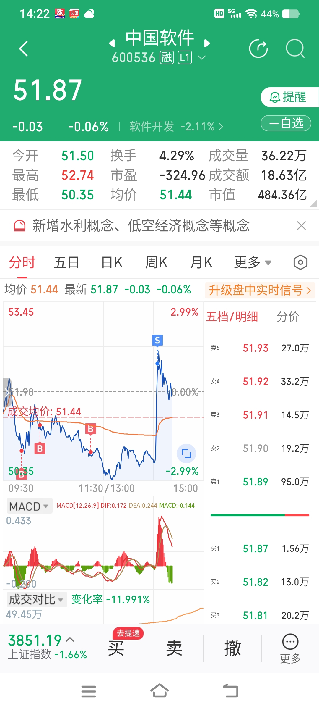 $中国软件(SH600536)$ 主力给机会T谢谢