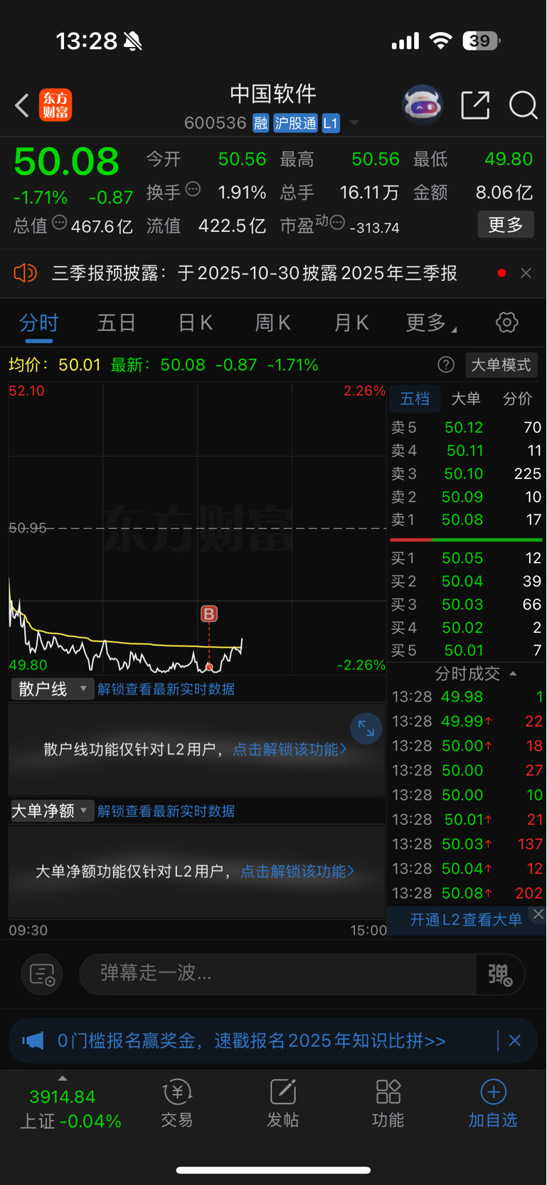 $中国软件(SH600536)$ 买了一点,明天有没有机会跑