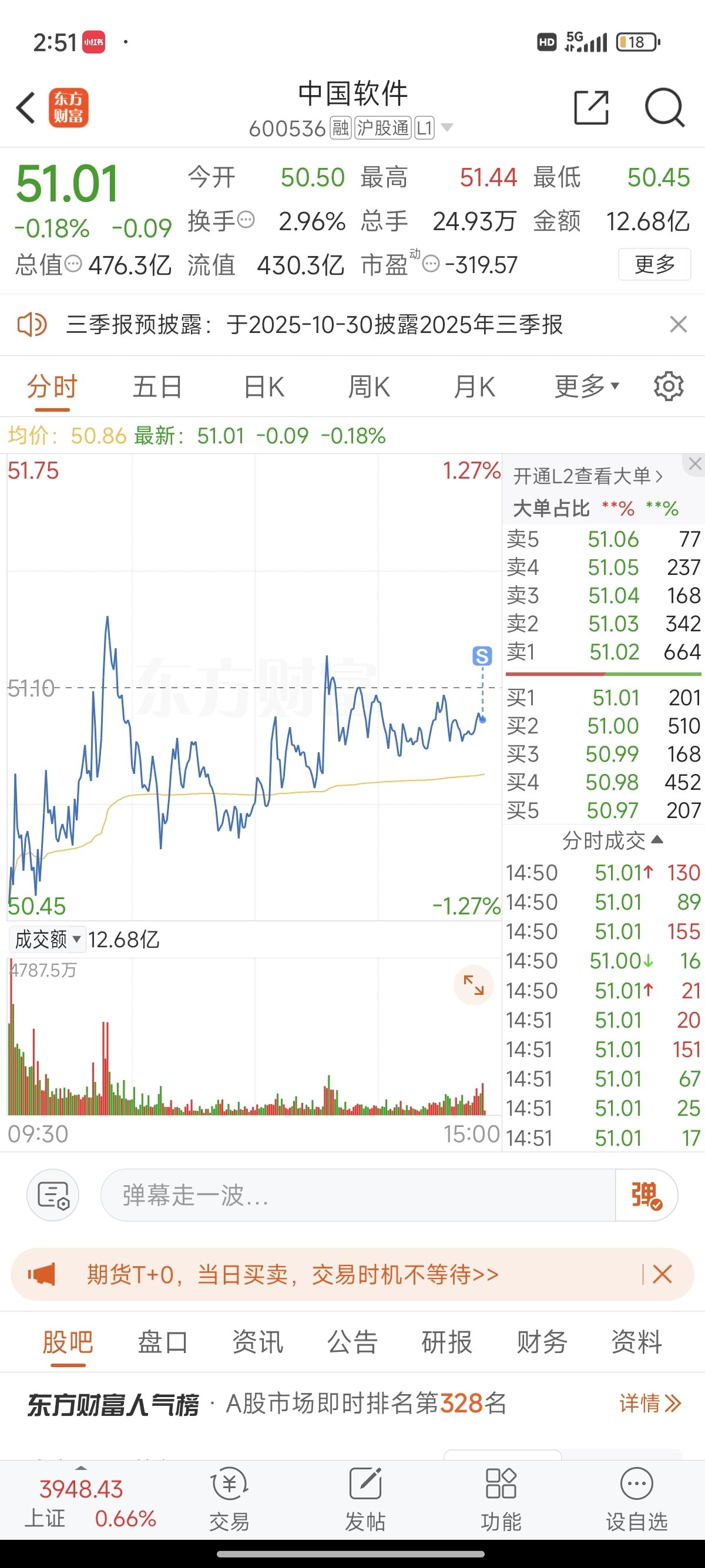 $中国软件(SH600536)$ 我走了 兄弟们 我估计这是底部震荡至少要5天