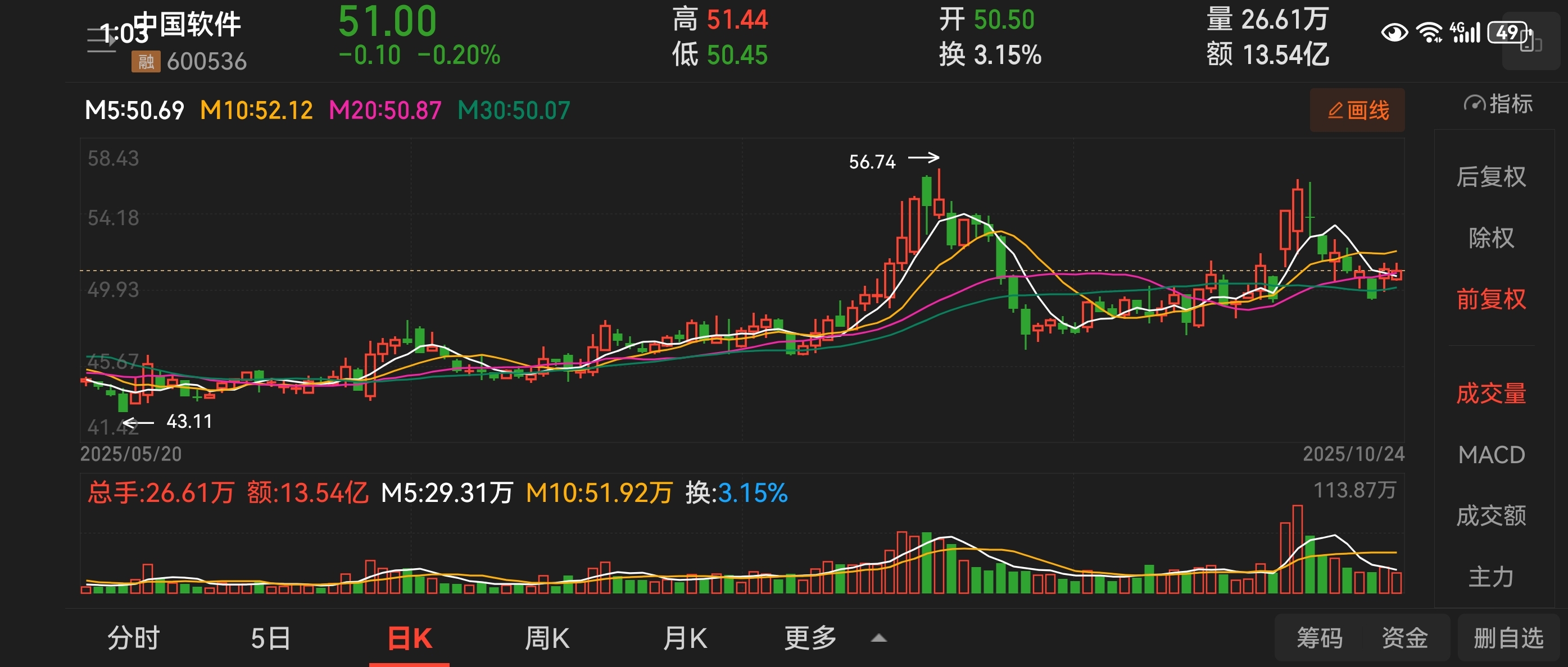 $中国软件(SH600536)$ 中软调整的差不多了,后续看反弹