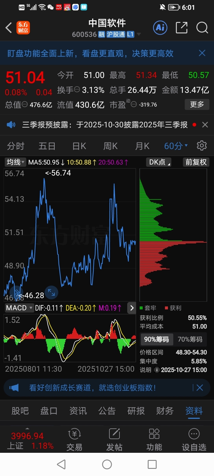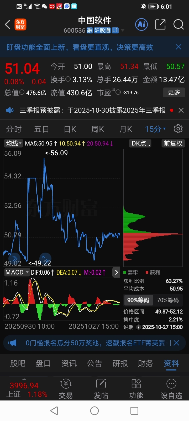 $中国软件(SH600536)$ A股软件板块已经调整到底部,明天只要大盘指数放量突破4000点剑指4350点,软件板块应该会有强势反弹补涨,