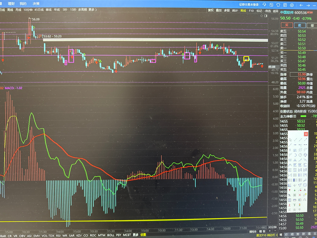 $中国软件(SH600536)$ 恐慌砸盘怕什么,有本事把Macd 给哥破了,破49哥的成本线再说吧,哥相信专家说的唯一,再说了60分钟只是回踩箱体中线位而已,技术大咖在此坐阵,软软的轿夫翻不起大浪来,吓唬不了哥,充其量抓痒洗盘而已