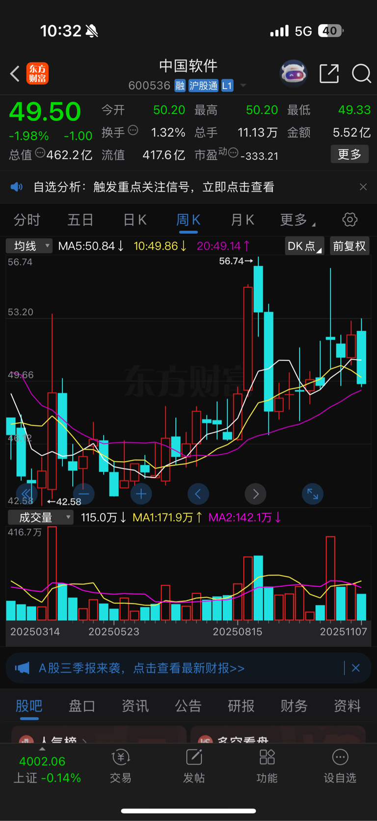 $中国软件(SH600536)$ 这种周线图形还需要看吗?
