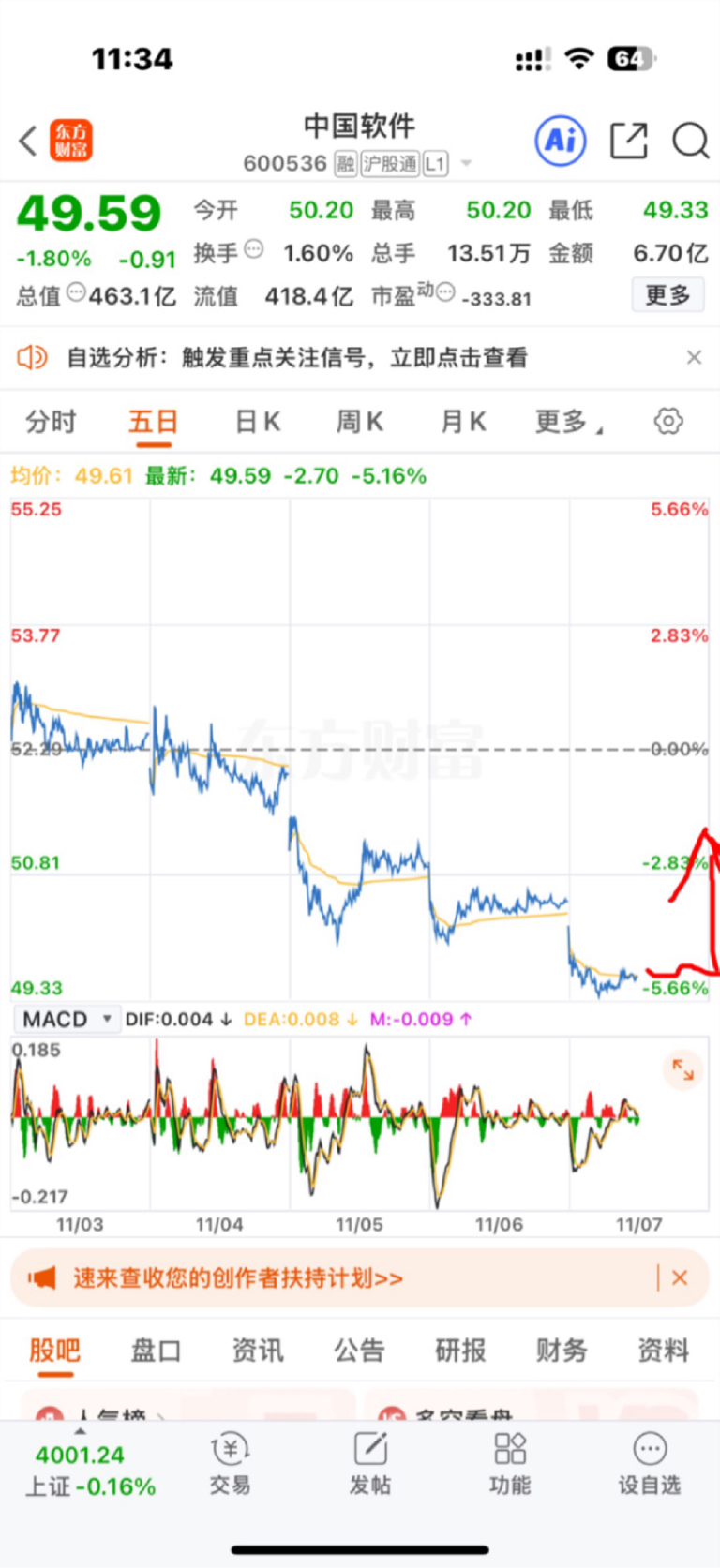 $中国软件(SH600536)$ 极限软软下午再回踩一下,漂亮的圆弧底,起飞前的暴力洗盘,工业互联网算力里面的唯一软件