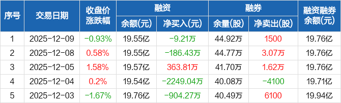 中国软件:融资净偿还9.21万元,融资余额19.55亿元(12-09)