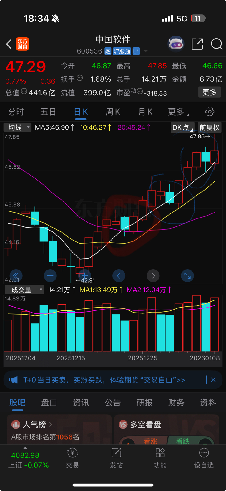 $中国软件(SH600536)$ 找到规律了,一个阴线后面会连阳三天,所以明天还中阳