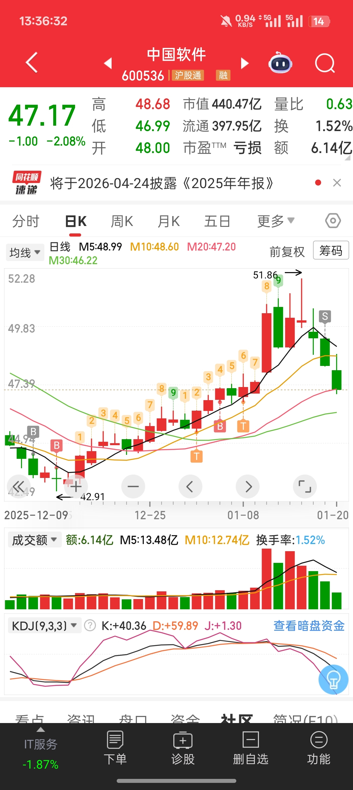 $中国软件(SH600536)$ 走势太差了,又一次没在50以上的时候把你抛了。等你回调到位再看了。