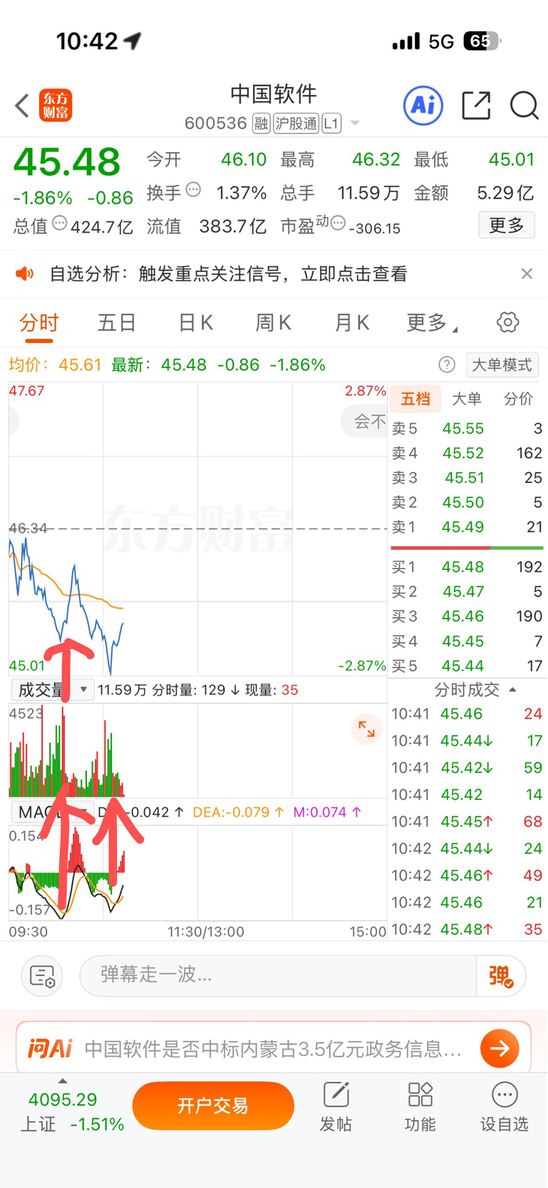 $中国软件(SH600536)$ 第一次抢,以为到底了。第二次抢,抢不过,躺平了。穷b主力,你没那么多本钱就别揽这个瓷器活啊。