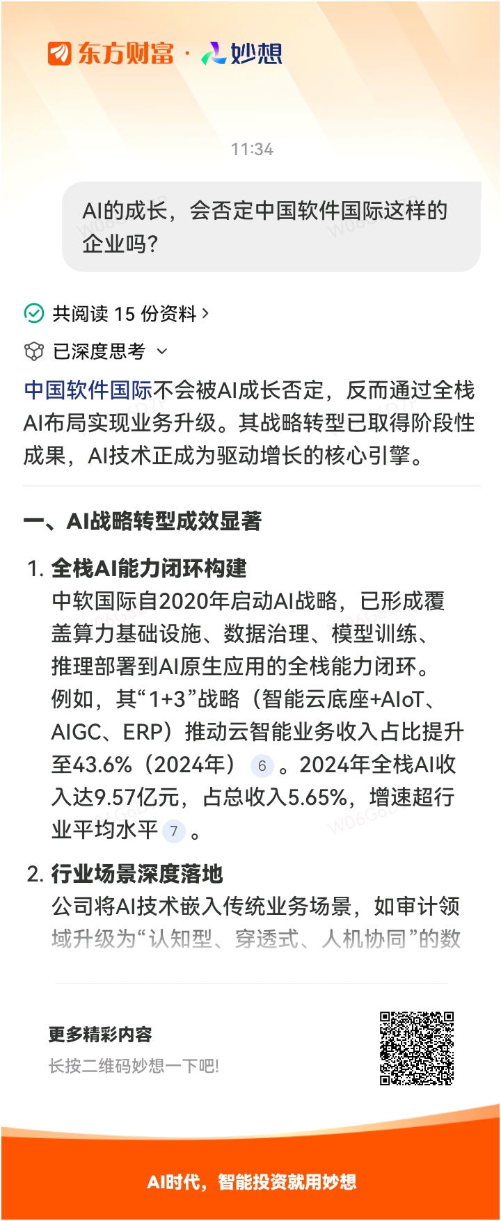 #@妙想,你怎么看?# 妙想一下:AI的成长,会否定中国软件国际这样的企业吗?