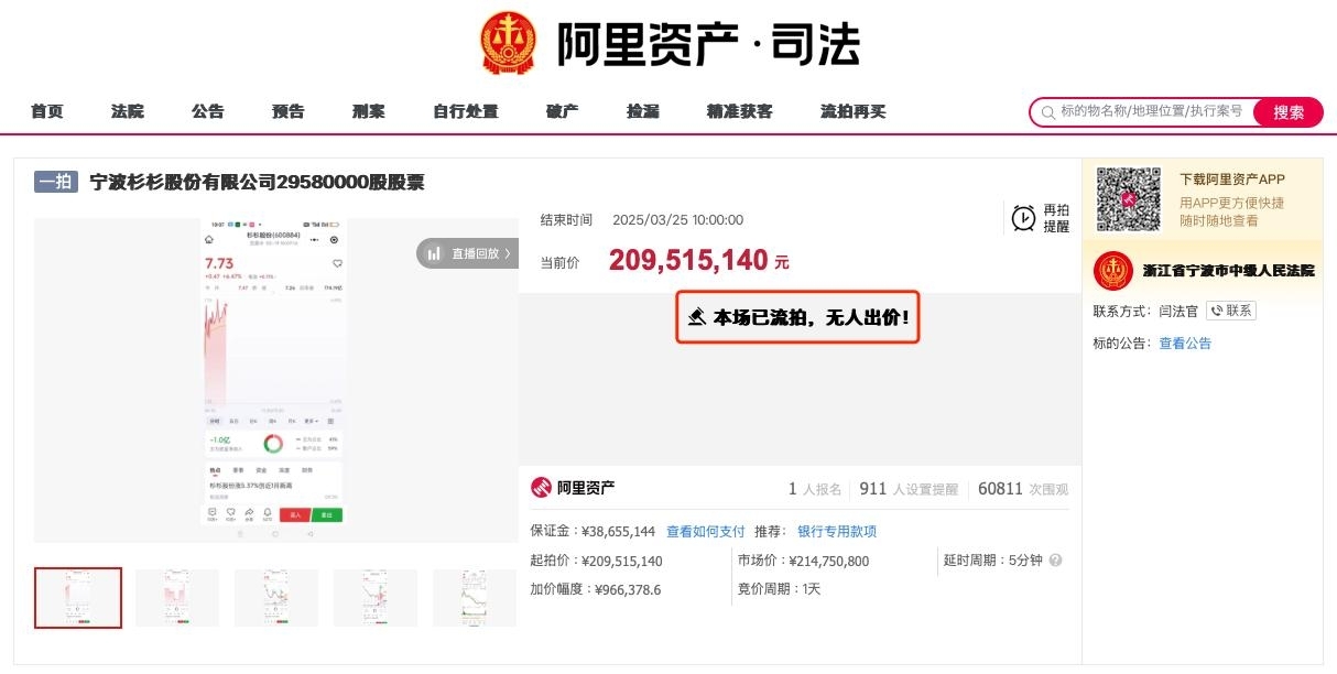 今年3月杉杉股份也是拍卖股票最后流拍了股价翻3倍