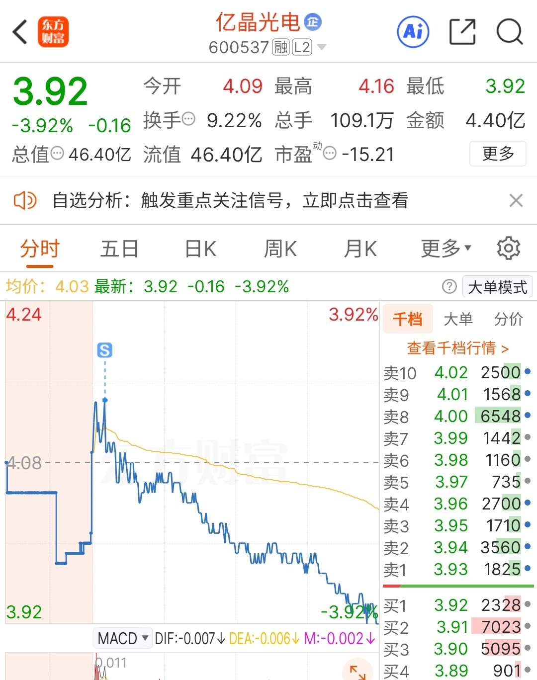 $亿晶光电(SH600537)$ 这种大环境下,很难走出来题材持续性,今天二次冲高出局,亏了一个手续费,整个大盘面看的想睡觉,继续旅游喽