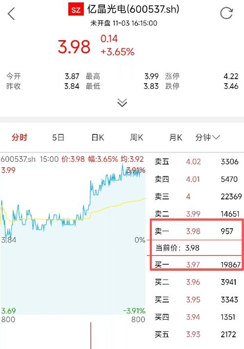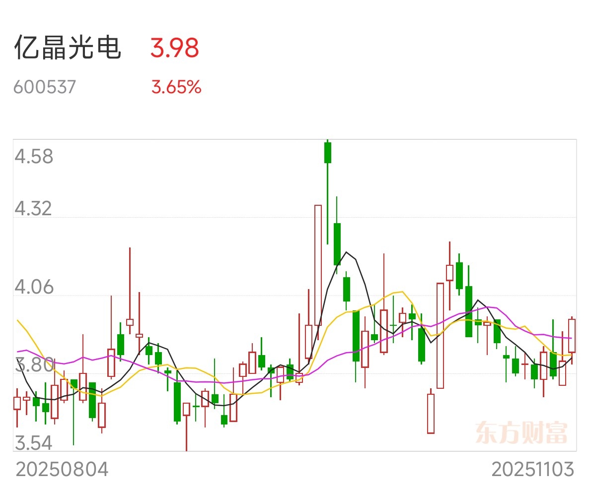11 月 3 日,亿晶光电(股票代码:600537.SH)在股票市场呈现出活跃且积极的态势。当日收盘价为 3.98 元,较上一交易日上涨 3.65%,成交额达 4.10 亿元,换手率为 8.84%,总市值为 47.11 亿元。这些数据表明,亿晶光电当日交易热度较高,市场关注度显著提升。