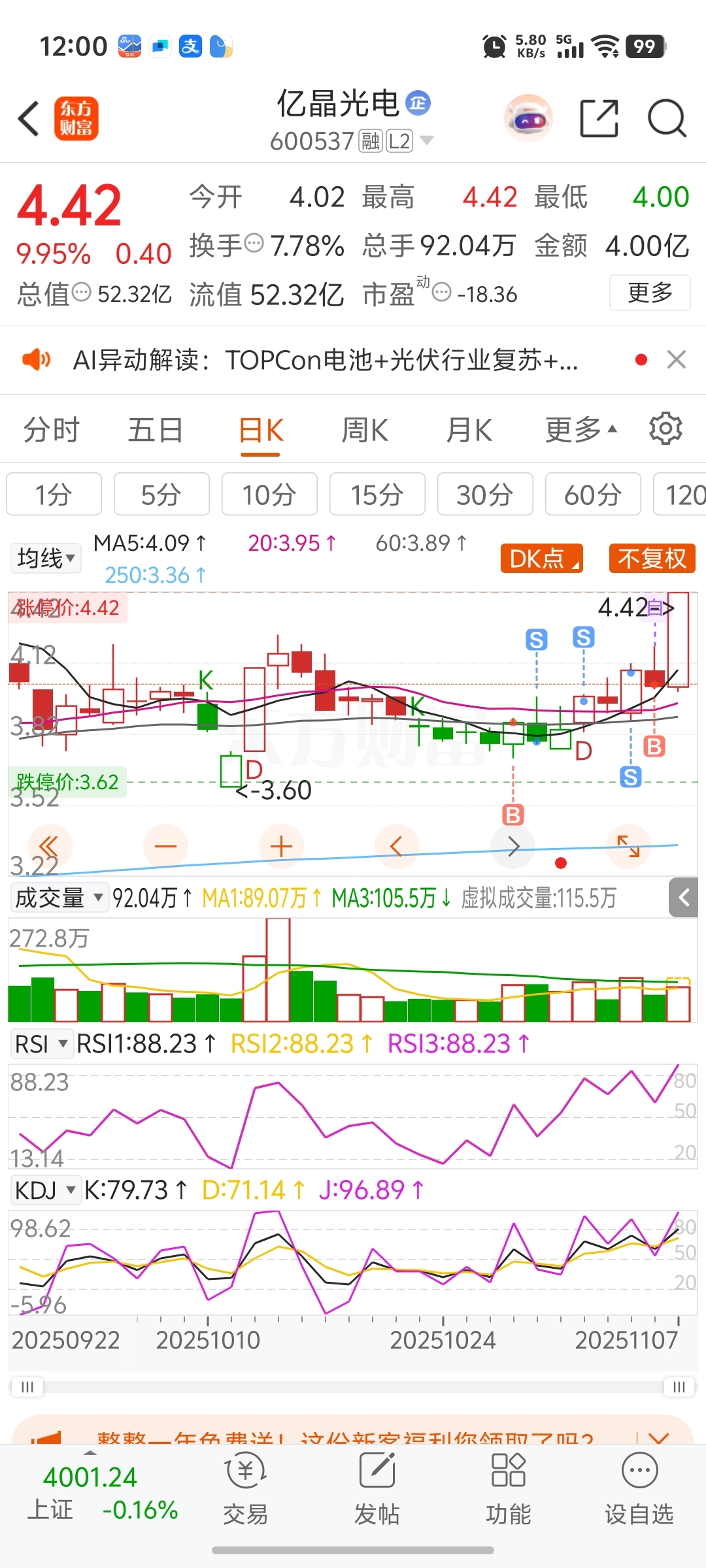 $亿晶光电(SH600537)$