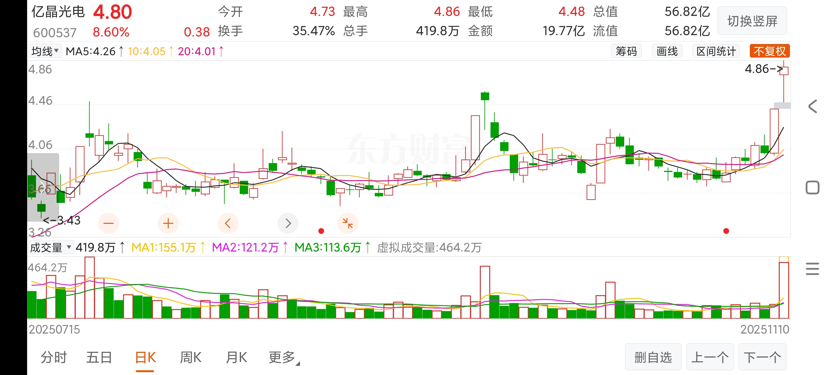 $亿晶光电(SH600537)$ 主升浪,公司无控股股东,这可能也是资金炒作的原因。
