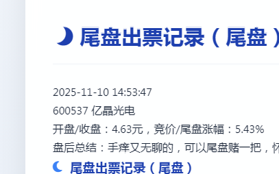 2025-11-1014:53:47600537亿晶光电开盘/收盘:4.63元,