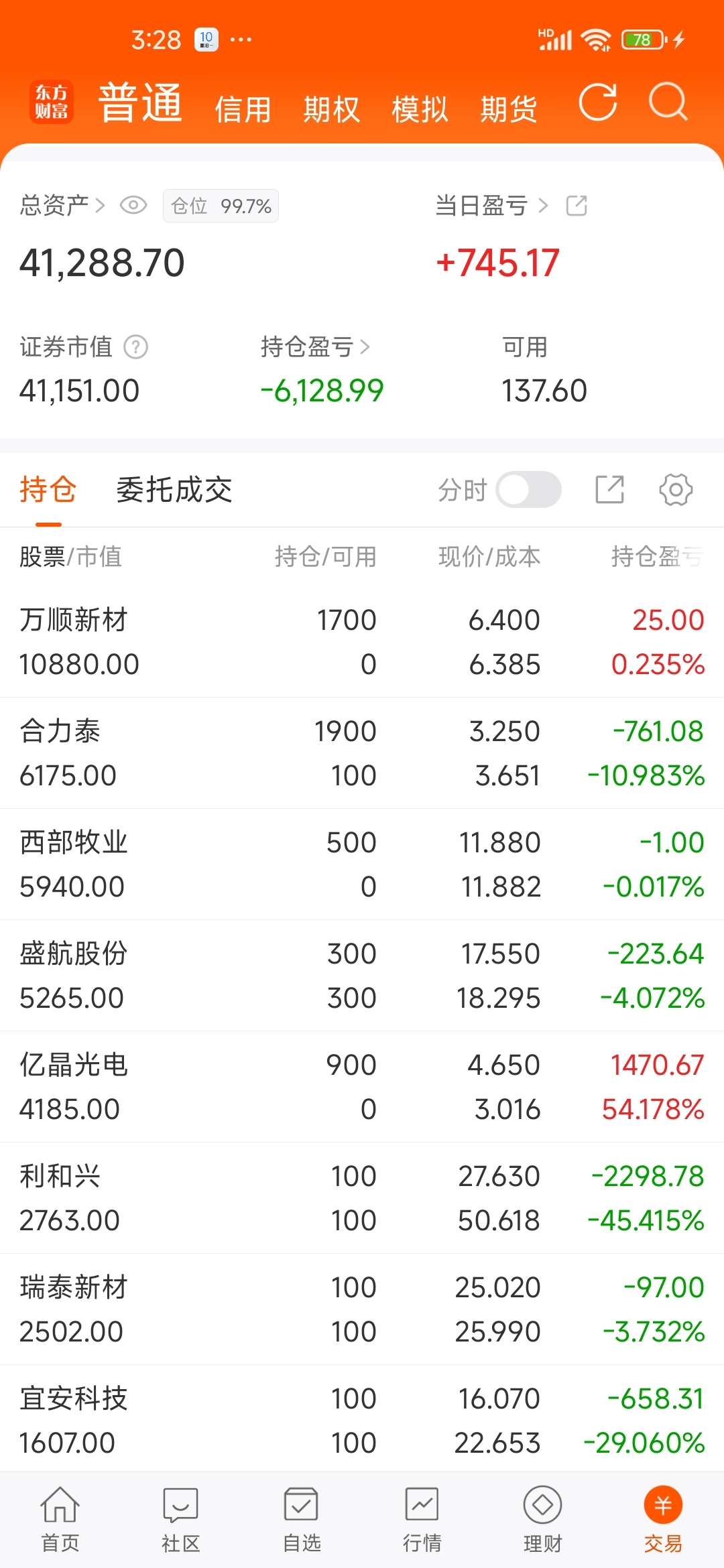 合力泰,早盘看低开震荡出掉了大部分仓位,下午拉升又接回了18手,做了个反T。