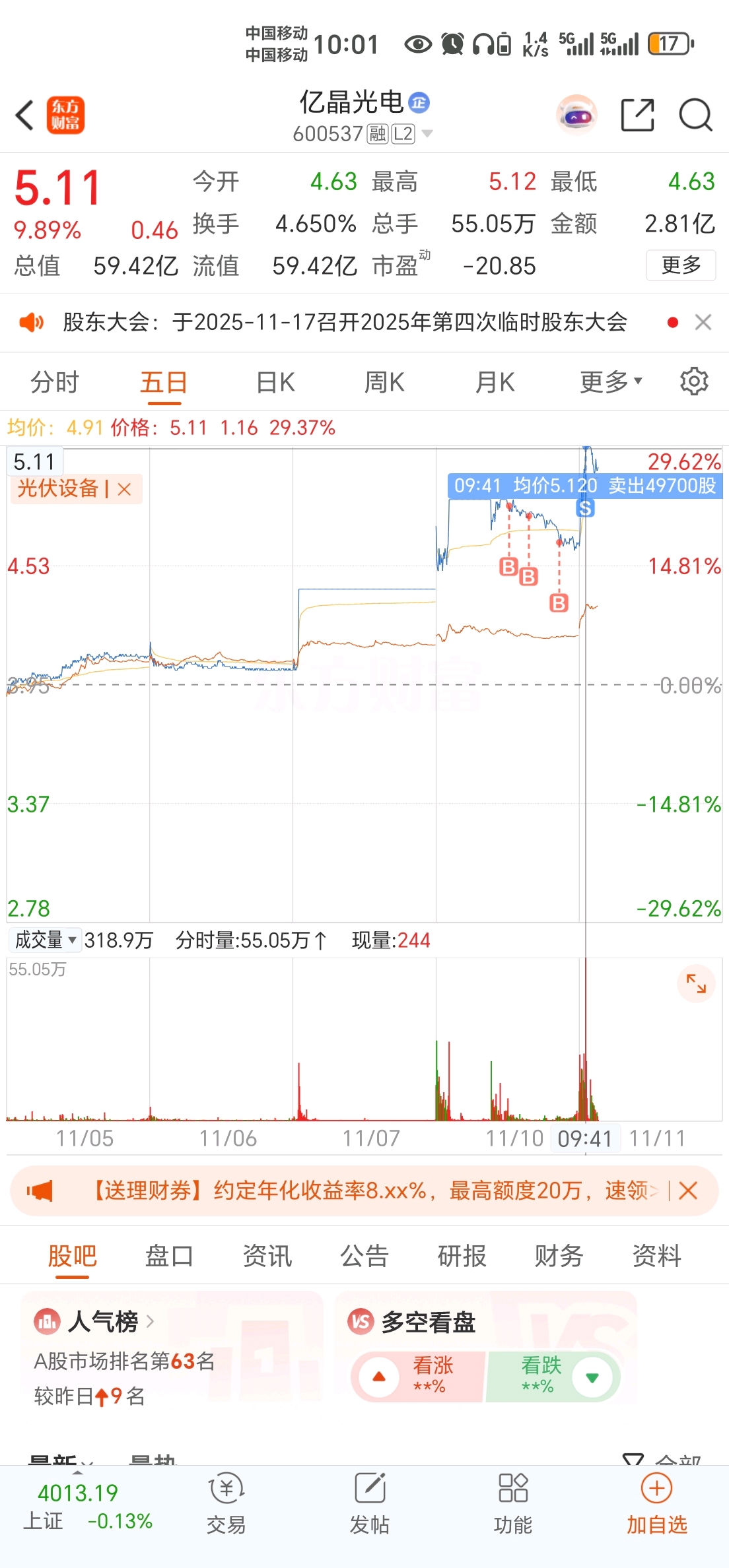 $亿晶光电(SH600537)$ 亏损股只能做超短线,君子不立危墙之下,昨天进今天出,二万到手知足了,再连板也是我的认知赚不到的钱了。