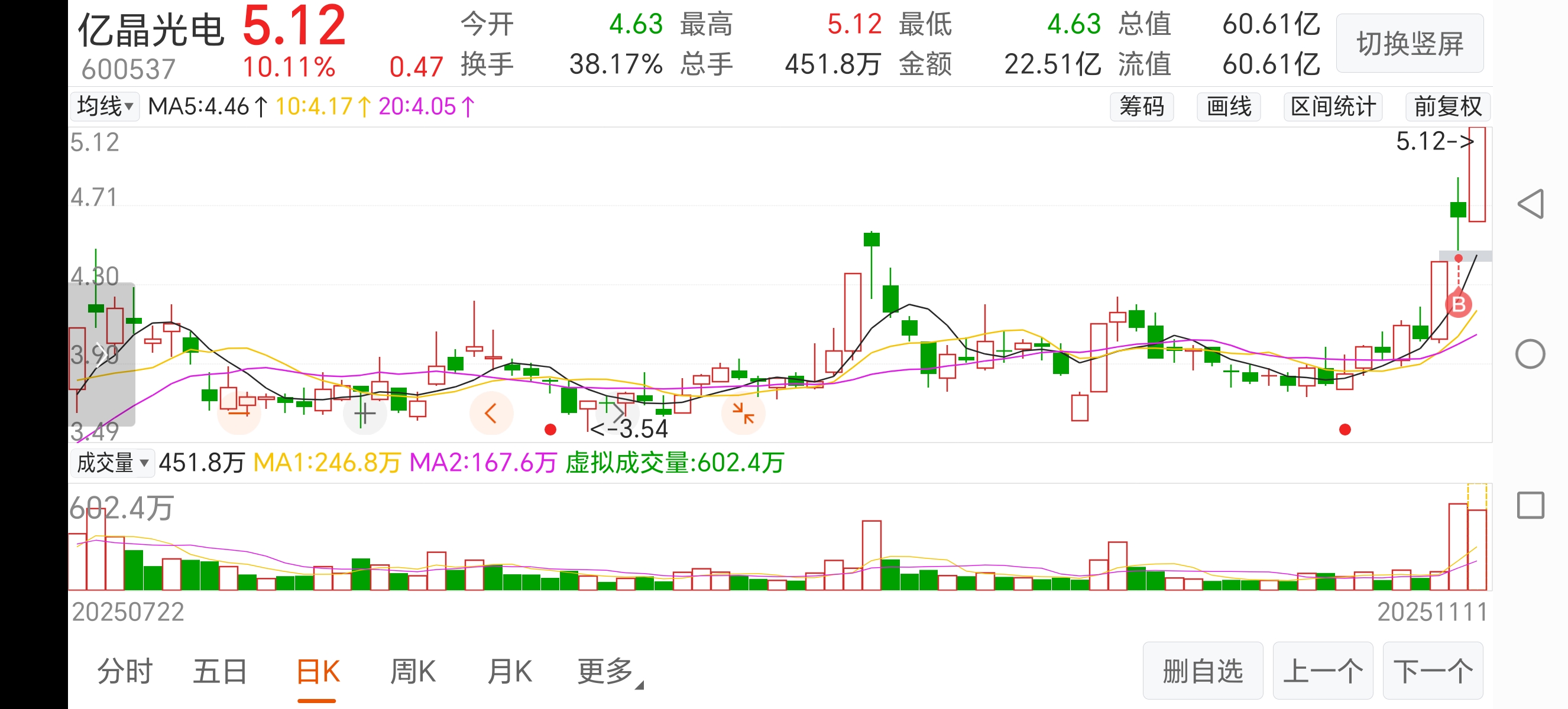 $亿晶光电(SH600537)$ 昨天5个点买的,我这算是抗住了?没被洗?