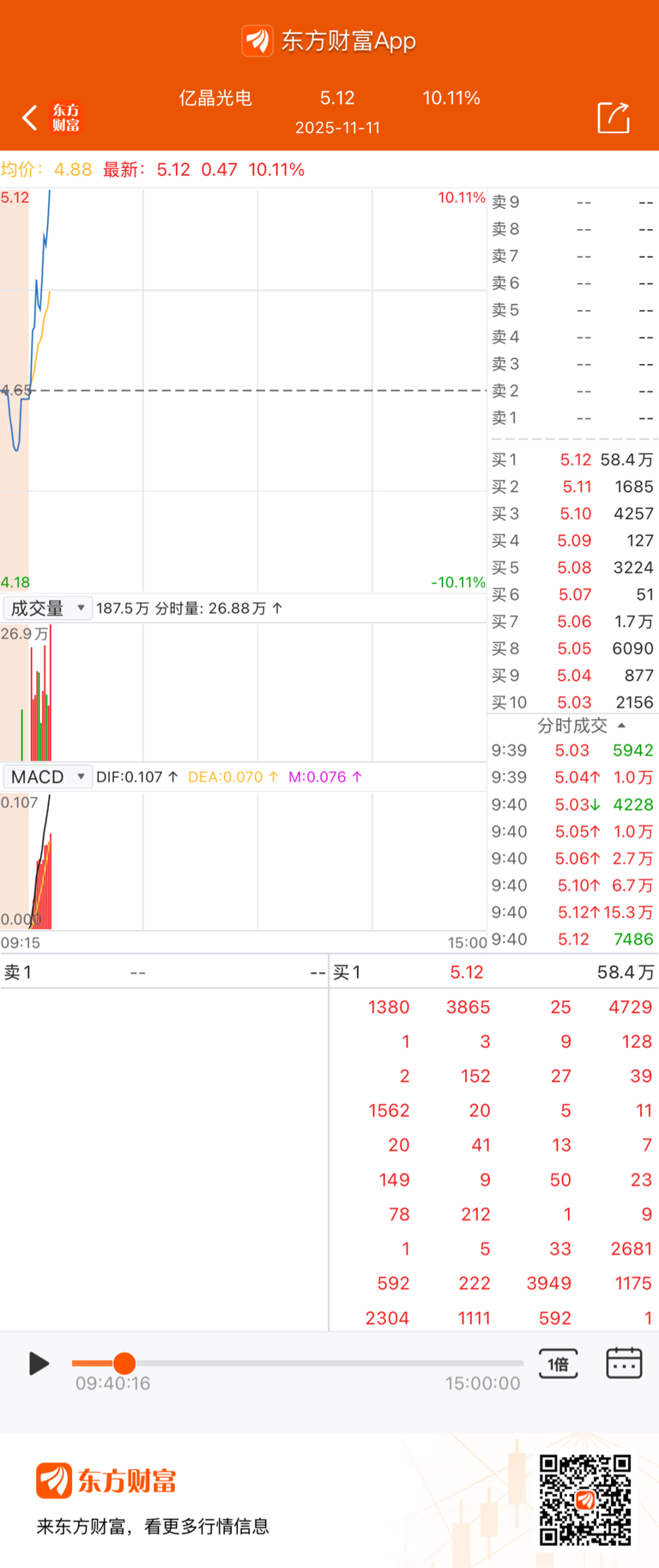 $亿晶光电(SH600537)$ 仔细看今天封板时候盘口!大单封住,撤单让后面的排版的全部成交。这样操作了好几次!这个主力出货的手法和之前一个样