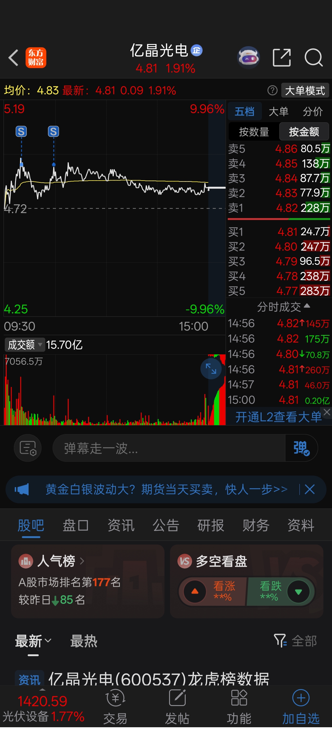 $亿晶光电(SH600537)$ 就感觉你难成气候