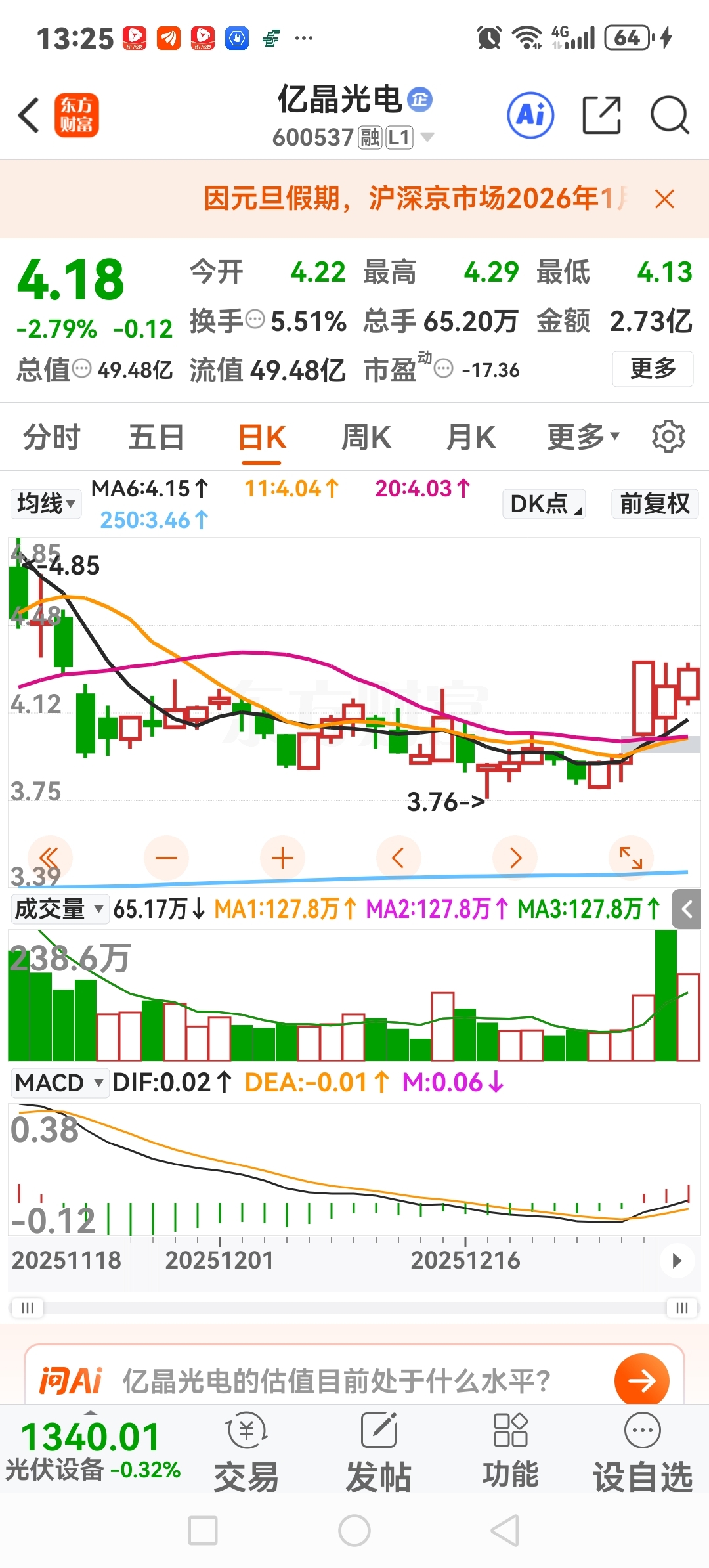 $亿晶光电(SH600537)$ 涨停后低开放量到底是不是好事。