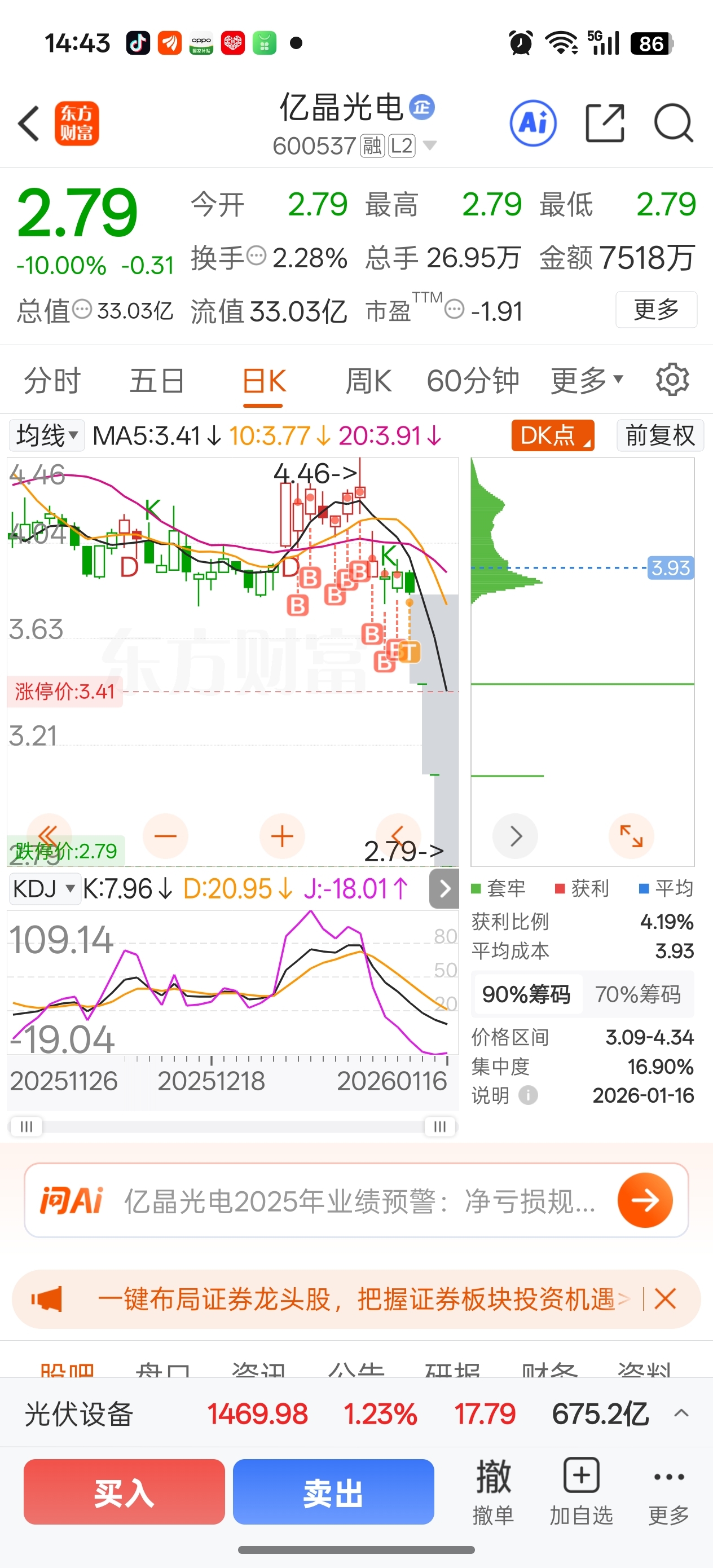 $亿晶光电(SH600537)$ 跌的都不想跑了
