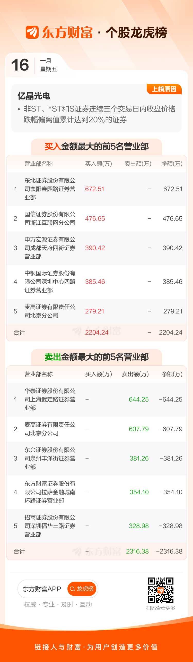 亿晶光电(600537)龙虎榜数据(01-16)