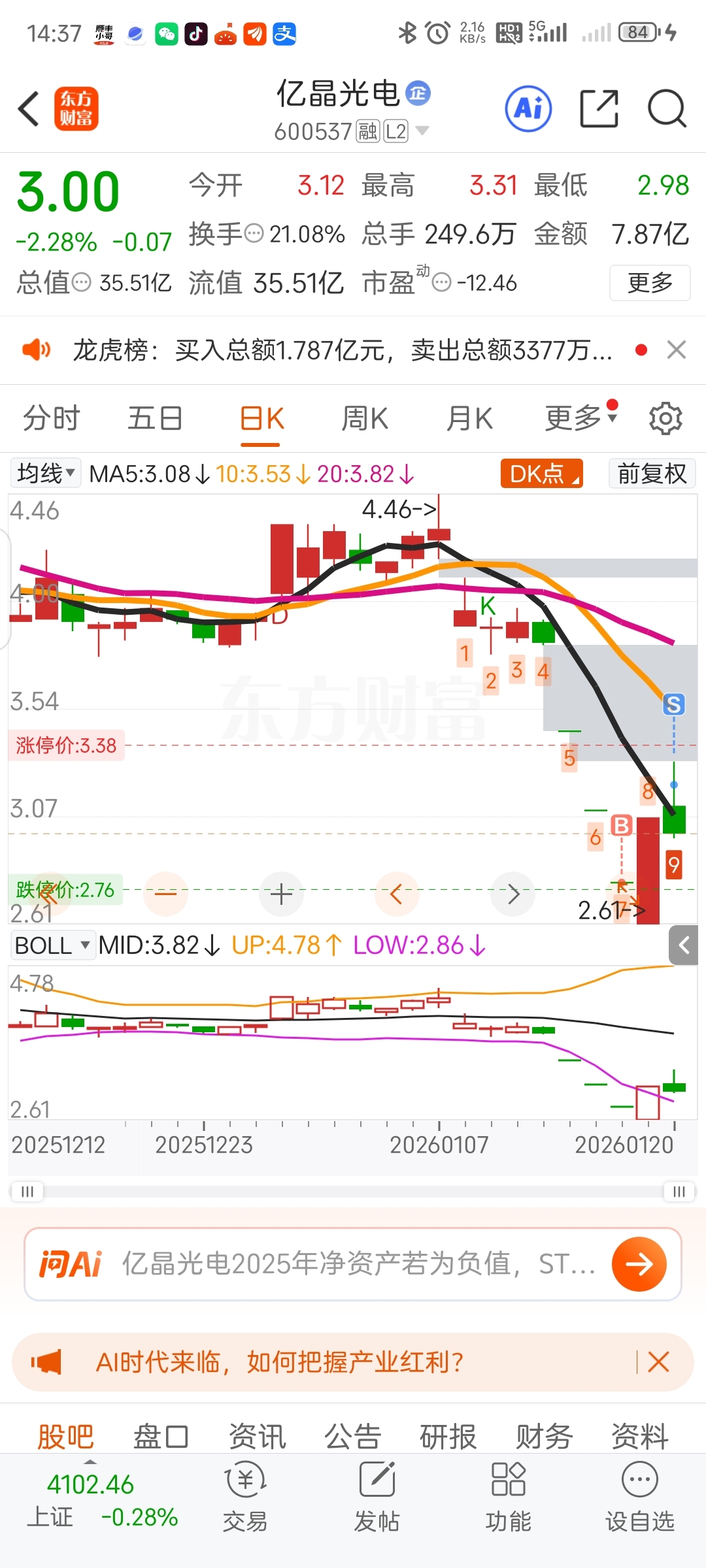 $亿晶光电(SH600537)$