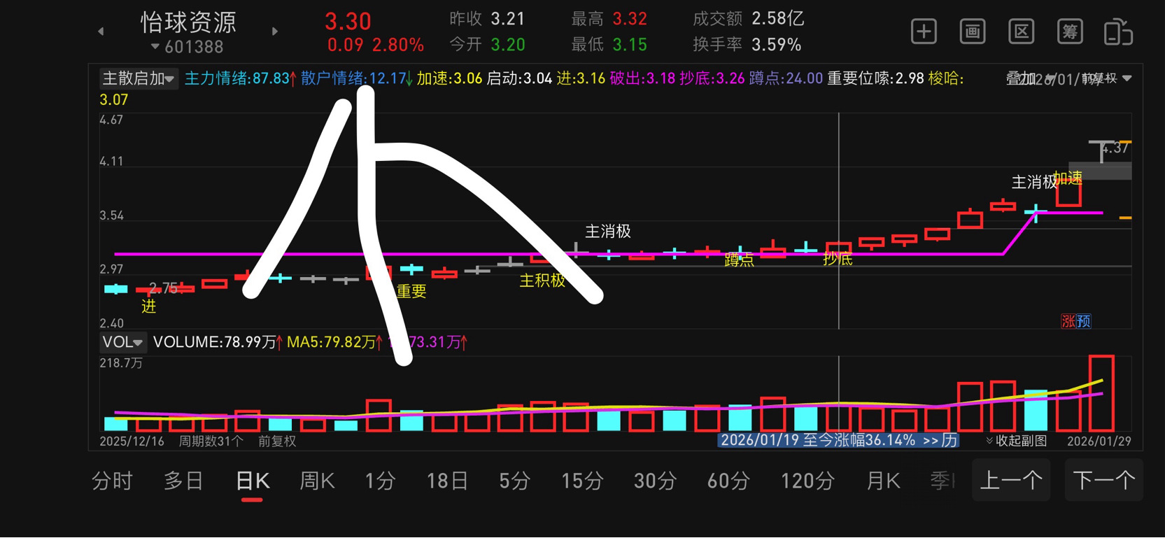 “散户情绪值”要跌到14以下,才是真拉升,个人记录