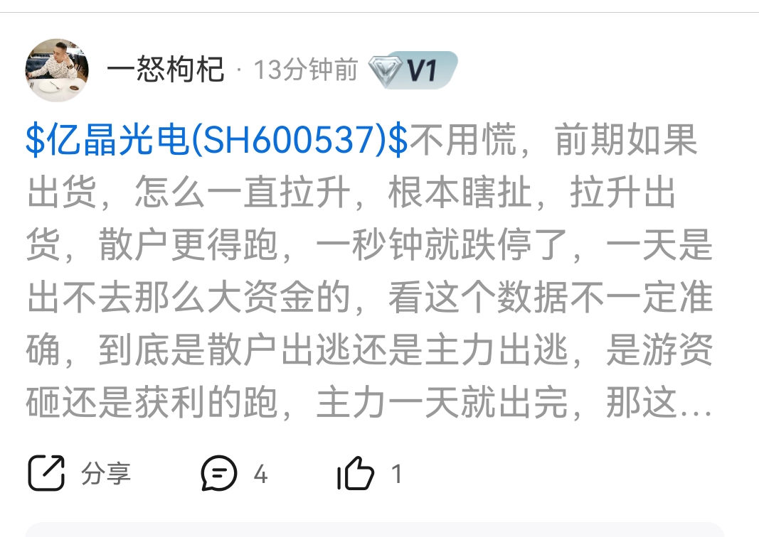 温馨提示: 1.根据《证券法》规定,禁止编造、传播虚假信息或者误导性信息,扰乱证券市场;2.用户在本社区发表的所有资料、言论等仅代表个人观点,与本网站立场无关,不对您构成任何投资建议。用户应基于自己的独立判断,自行决定证券投资并承担相应风险。《东方财富社区管理规定》