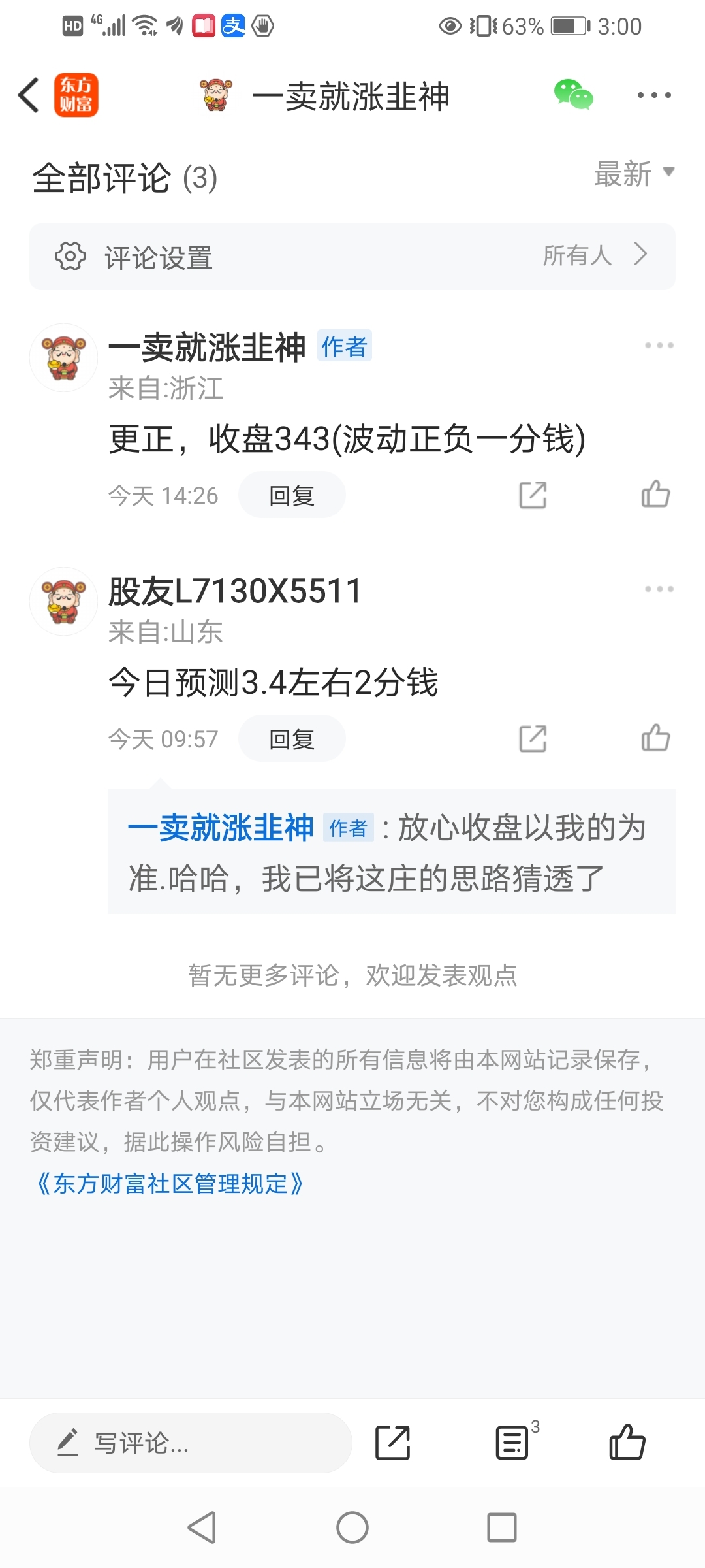 温馨提示: 1.根据《证券法》规定,禁止编造、传播虚假信息或者误导性信息,扰乱证券市场;2.用户在本社区发表的所有资料、言论等仅代表个人观点,与本网站立场无关,不对您构成任何投资建议。用户应基于自己的独立判断,自行决定证券投资并承担相应风险。《东方财富社区管理规定》