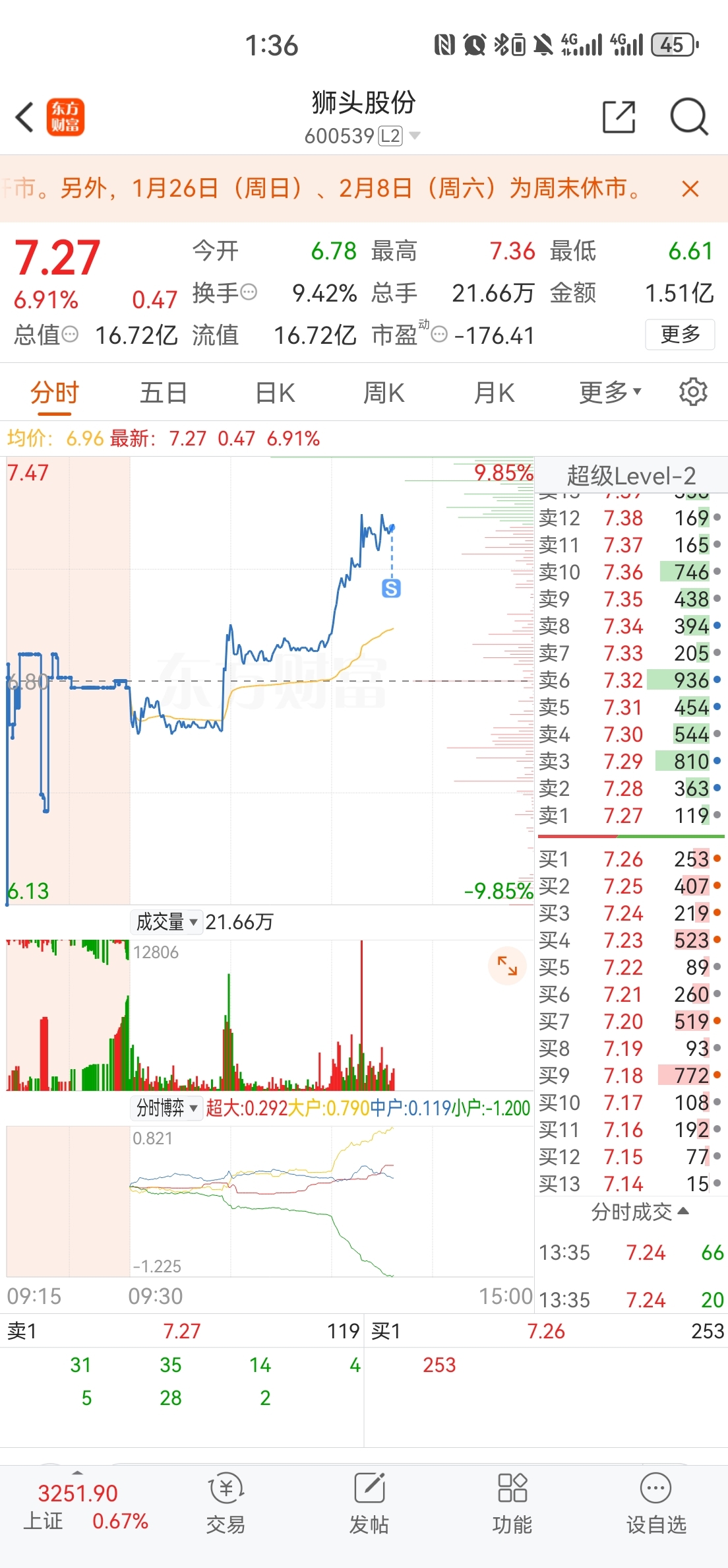 $狮头股份(SH600539)$ 走了,后面还要震荡